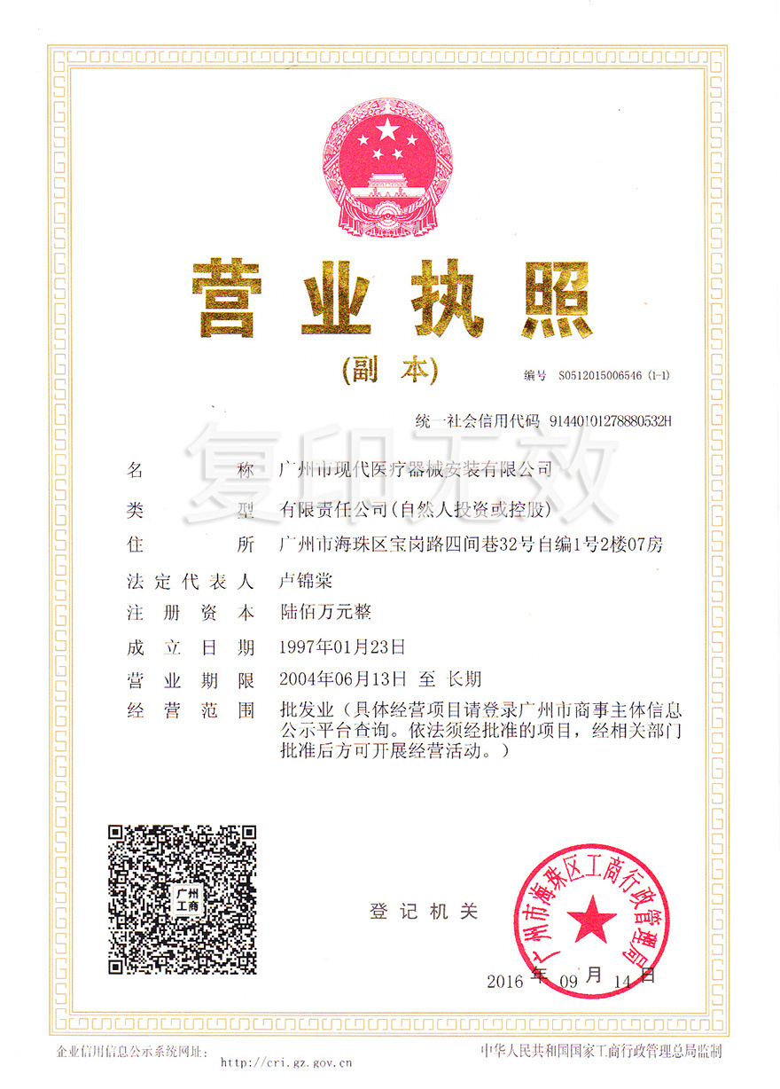 版权所有 广州市现代医疗器械安装有限公司 营业执照